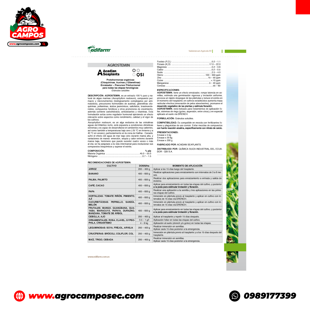 Agrostemin es un bioestimulante diseñado para mejorar el desarrollo y rendimiento de las plantas. Su fórmula estimula la actividad celular, promueve un sistema radicular robusto y refuerza la resistencia de los cultivos frente a factores de estrés abiótico y biótico. Es ideal para una amplia variedad de cultivos, incluyendo hortalizas, frutas, flores y cereales.