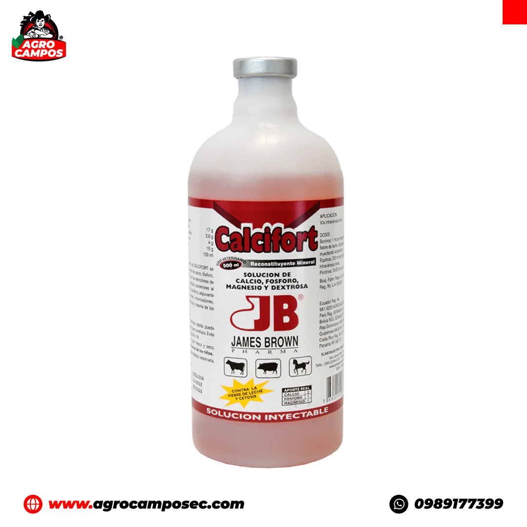 Calcifort es un suplemento mineral formulado con calcio, fósforo, magnesio y dextrosa, diseñado para corregir deficiencias metabólicas en animales de producción. Su aplicación es recomendada en casos de fiebre de leche, síndrome de la vaca caída, tetania de los pastos, hipocalcemia y cetosis, favoreciendo la recuperación y el equilibrio fisiológico del animal.