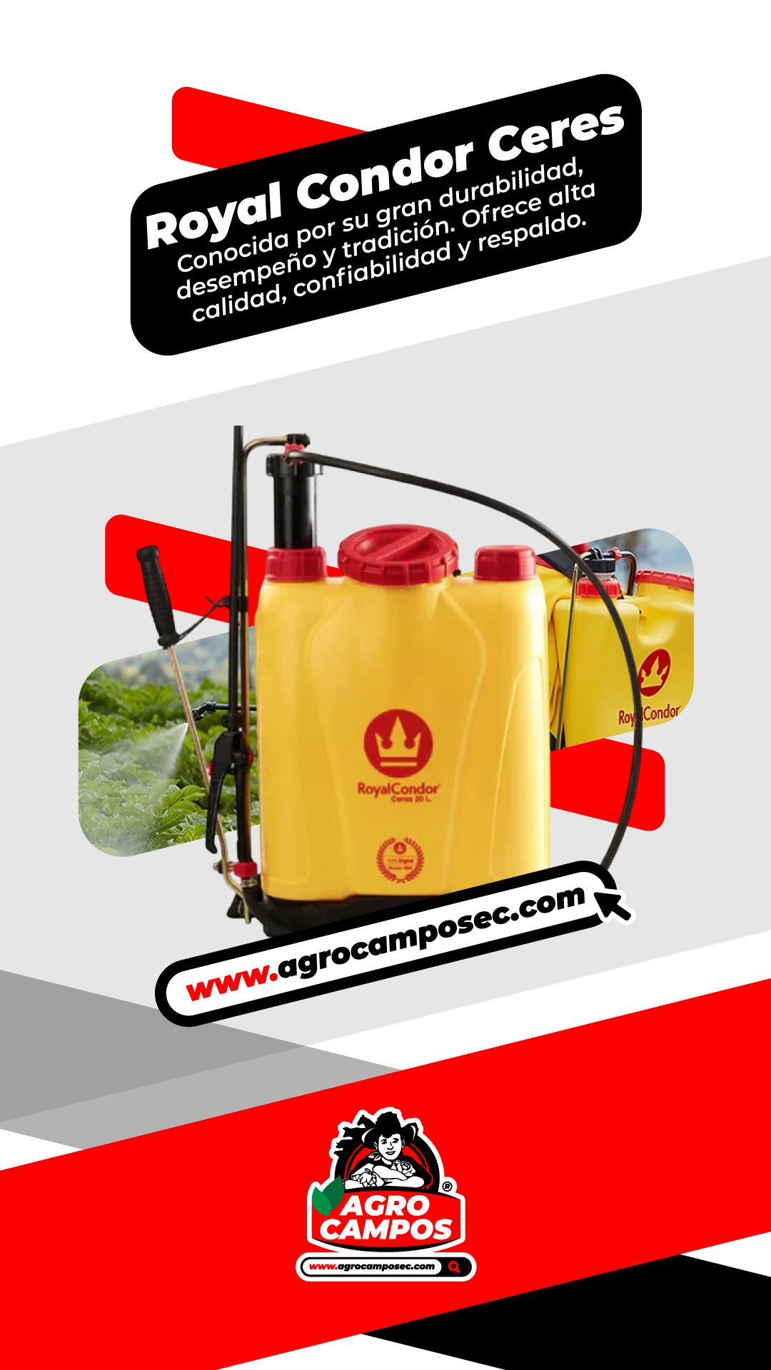 #RoyalCondorCeres #PulverizadorManual #AgroCampos #Ecuador #AplicaciónPrecisa #ProtecciónDeCultivos #EficaciaComprobada