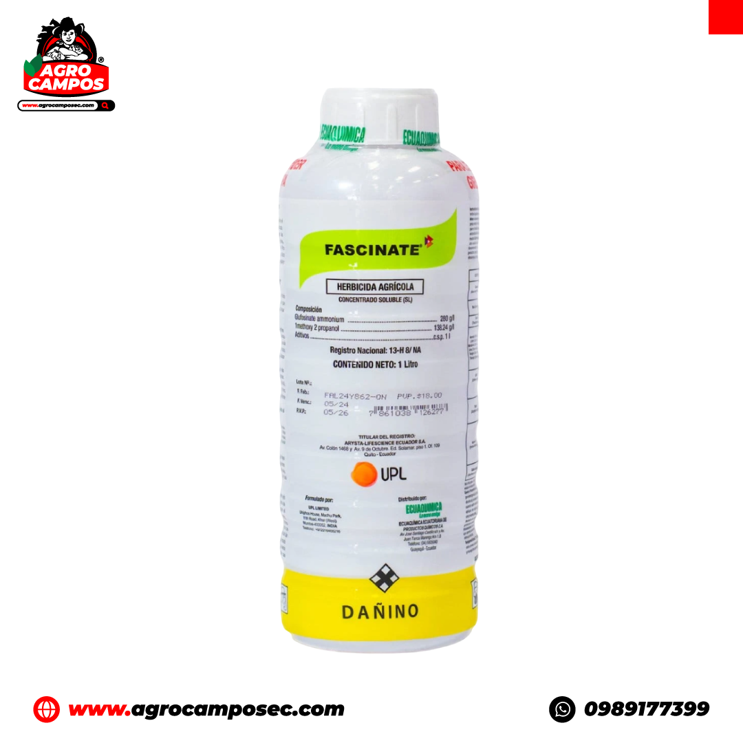 Fascinate es un herbicida formulado con glufosinato de amonio, diseñado para el control eficaz de malezas en diversos cultivos. Su acción de contacto no selectiva provoca una clorosis rápida en las malezas, penetrando a través de la cutícula de las hojas y demás tejidos verdes de la planta.