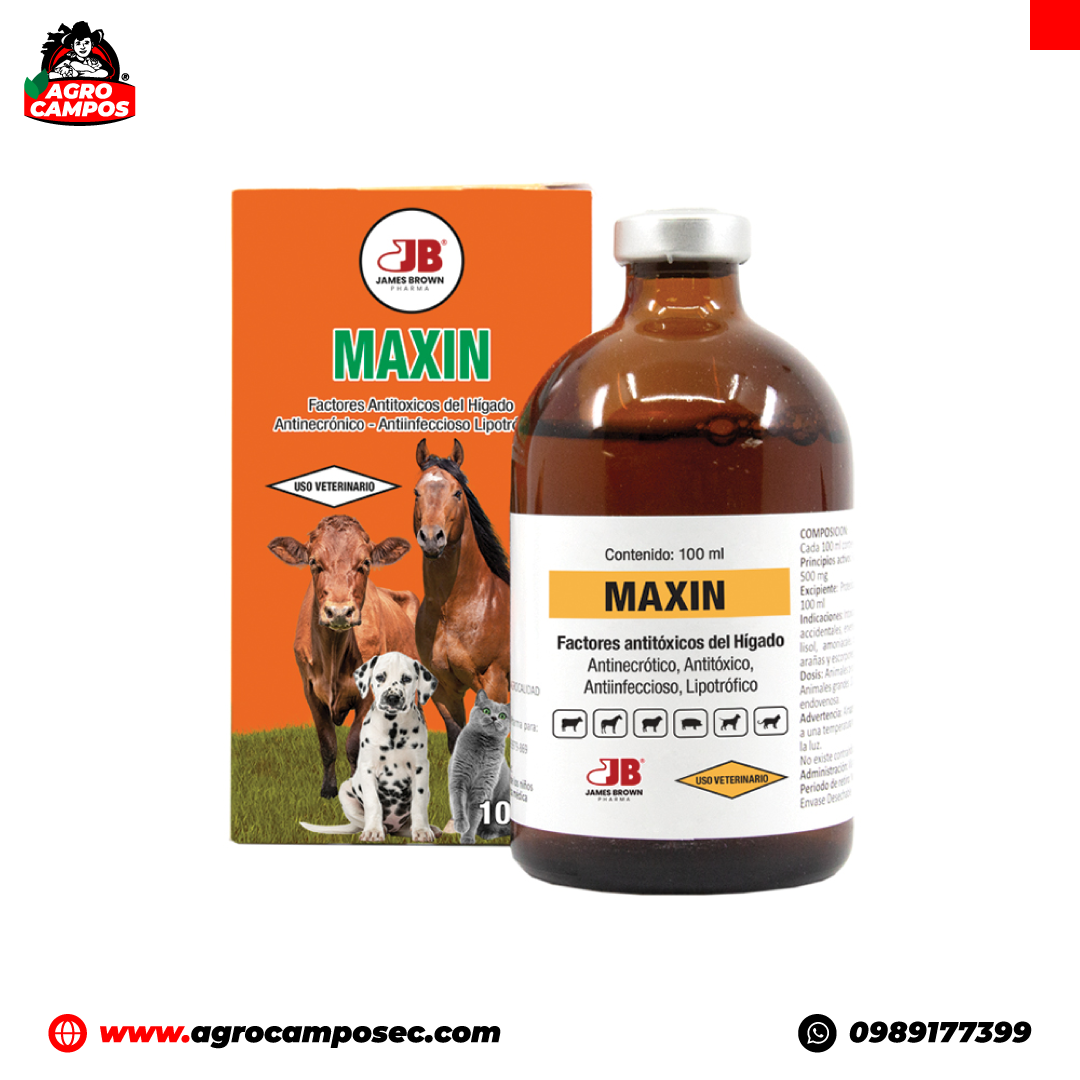 Maxin es un tratamiento coadyuvante, formulado con factores antitóxicos del hígado, diseñado para combatir intoxicaciones endógenas y exógenas, así como enfermedades hepáticas en animales de producción y compañía. Su acción ayuda a neutralizar toxinas, mejorar la función hepática y acelerar la recuperación en casos de intoxicación o daño hepático.