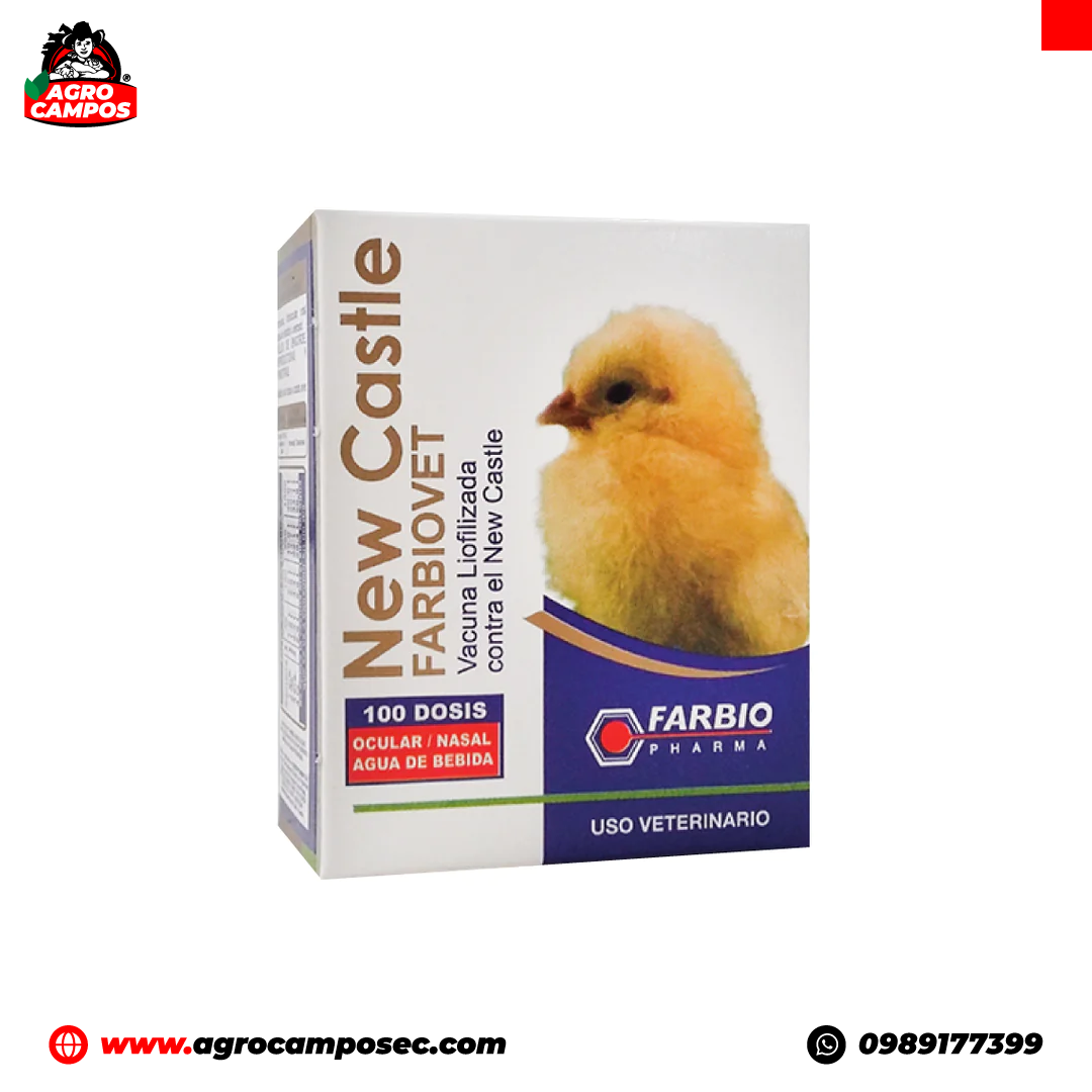 NewCastle Farbiovet es una vacuna de virus vivos modificados, diseñada para la inmunización activa de aves contra la Enfermedad de Newcastle.