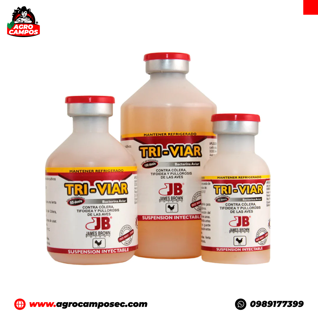 Triviar es una bacterina inyectable, formulada con cultivos químicamente inactivados de Pasteurella multocida, Salmonella gallinarum y Salmonella pullorum, diseñada para la prevención y control de enfermedades bacterianas en aves.